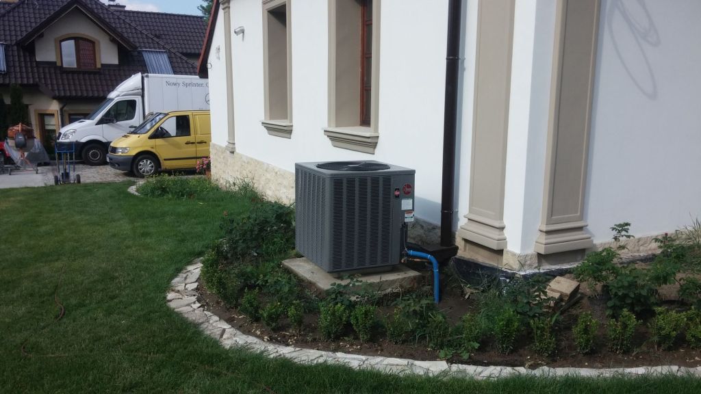 Montaż agregatu Rheem do systemu ogrzewania nadmuchowego Montaż agregatu chłodniczego wraz z pompą ciepła Rheem do systemu ogrzewania nadmuchowego